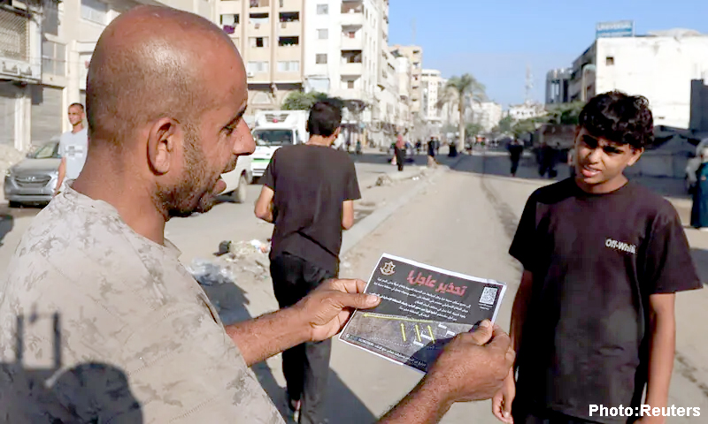 غزہ(رائٹرز) — اسرائیلی فوج نے نئی زمینی کارروائی سے قبل غزہ شہر کے رہائشیوں کو فوری انخلا کا حکم دیتے ہوئے کہا ہے کہ وہ خان یونس کے علاقے المواسی منتقل ہوجائیں، جسے ’انسانی ہمدردی کا زون‘ قرار دیا جا رہا ہے۔وزیراعظم بینجمن نیتن یاہو نے غزہ کے شہریوں کو خبردار کیا کہ “یہ موقع ہے، وہاں سے نکل جائیں”، انخلا کے اعلان نے شہر میں خوف اور افراتفری پھیلا دی۔