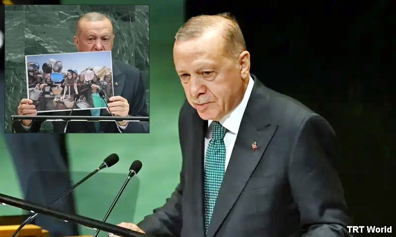 رجب طیب اردوان نے اپنے خطاب کے اختتام پر سوال اٹھایا: ’’کیا اس دنیا میں امن ہو سکتا ہے جہاں بچے بھوک اور دوائی کی کمی سے شہید ہو رہے ہوں؟ پچھلی صدی میں انسانیت نے ایسا ظلم نہیں دیکھا۔‘‘