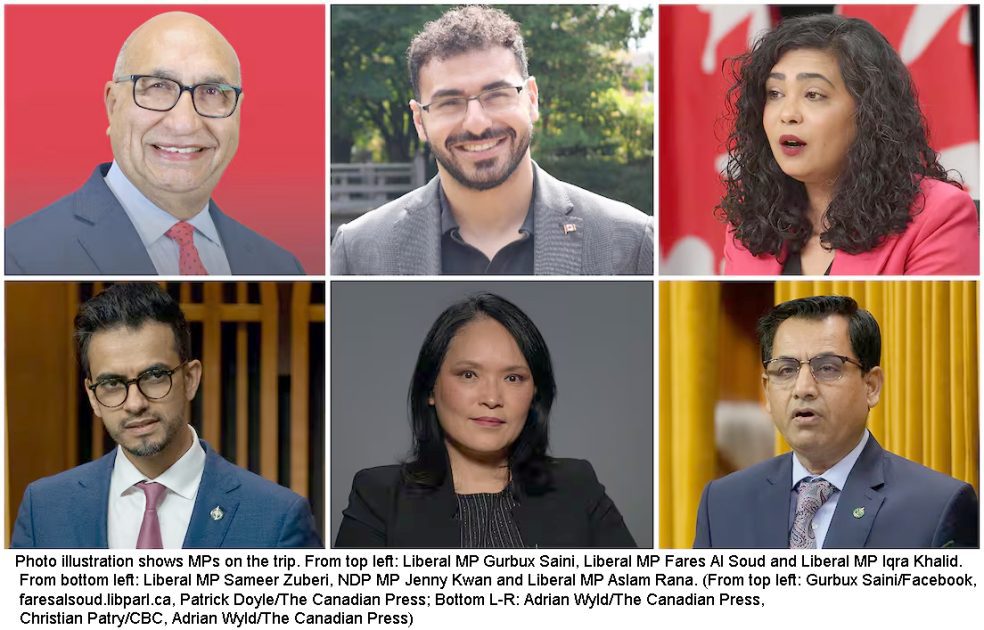 یہ وفد ایک رجسٹرڈ کینیڈین غیر منافع بخش تنظیم ’’کینیڈین مسلم ووٹ‘‘ کے زیرِ اہتمام اسپانسر شدہ دورے پر تھا اور اردن سے بذریعہ زمین مغربی کنارے میں داخل ہونا چاہتا تھا۔ وفد میں شامل چھ ارکانِ پارلیمنٹ میں لبرل پارٹی کے ایم پیز سمیر زبیری، فارس السعود، اسلم رانا، اقرا خالد، گربکس سینی اور نیو ڈیموکریٹک پارٹی کی رکن جینی کوان شامل ہیں۔