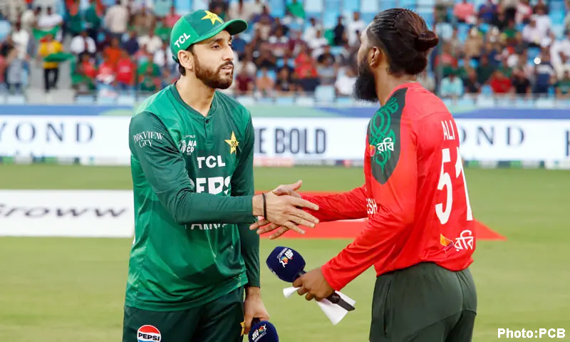 بنگلہ دیش کے مستقل کپتان لٹن داس کی غیر موجودگی میں کپتانی کے فرائض انجام دینے والے جاکر علی نے ٹاس جیت کر پہلے پاکستان کو بیٹنگ کی دعوت دی۔ قومی ٹیم کی جانب سے اننگز کا آغاز کرنے والے صاحبزادہ فرحان صرف 4 رنز ہی بناسکے۔ تیسرے نمبر پر بیٹنگ کیلئے آنے والے صائم ایوب ایک بار پھر کھاتہ کھولنے میں ناکام رہے اور ایشیا کپ میں چوتھی بار صفر پر آؤٹ ہوئے۔