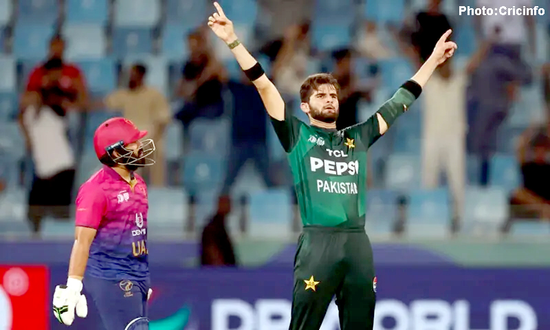 ہدف کے تعاقب میں یو اے ای کی پوری ٹیم 105 رنز بنا کر آل آؤٹ ہوگئی۔ راہول چوپڑا نے 35 اور دورو پراشار نے 20 رنز بنائے۔ پاکستان کی جانب سے ابرار احمد، حارث رؤف اور شاہین شاہ آفریدی نے 2،2 وکٹیں جبکہ صائم ایوب اور سلمان علی آغا نے ایک، ایک وکٹ حاصل کی۔