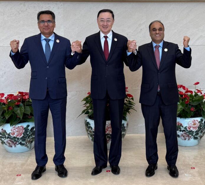 کُنمِنگ (چین): بنگلہ دیش، چین اور پاکستان کے درمیان سہ فریقی تعاون کے میکانزم کا پہلا اجلاس آج چین کے صوبہ یوننان کے دارالحکومت کُنمِنگ میں منعقد ہوا۔ اس اہم اجلاس میں چین کے نائب وزیر خارجہ سُن ویڈونگ، بنگلہ دیش کے قائم مقام سیکریٹری خارجہ روحالعالم صدیقی، اور پاکستان کے ایڈیشنل سیکریٹری خارجہ عمران احمد صدیقی نے شرکت کی۔