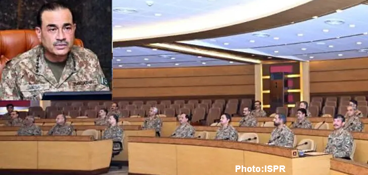 پاک فوج کے شعبہ تعلقات عامہ (آئی ایس پی آر) کے مطابق 272 ویں کور کمانڈرز کانفرنس جنرل ہیڈکوارٹرز (جی ایچ کیو) راولپنڈی میں منعقد ہوئی جس کی صدارت فیلڈ مارشل سید عاصم منیر نے کی۔ اجلاس کا آغاز حالیہ بھارتی سرپرستی میں ہونے والے دہشت گرد حملوں میں شہداء کے لیے فاتحہ خوانی سے کیا گیا۔ فورم نے انسدادِ دہشت گردی کی جاری کارروائیوں، ابھرتے ہوئے خطرات اور آپریشنل تیاری کا تفصیلی جائزہ لیا۔