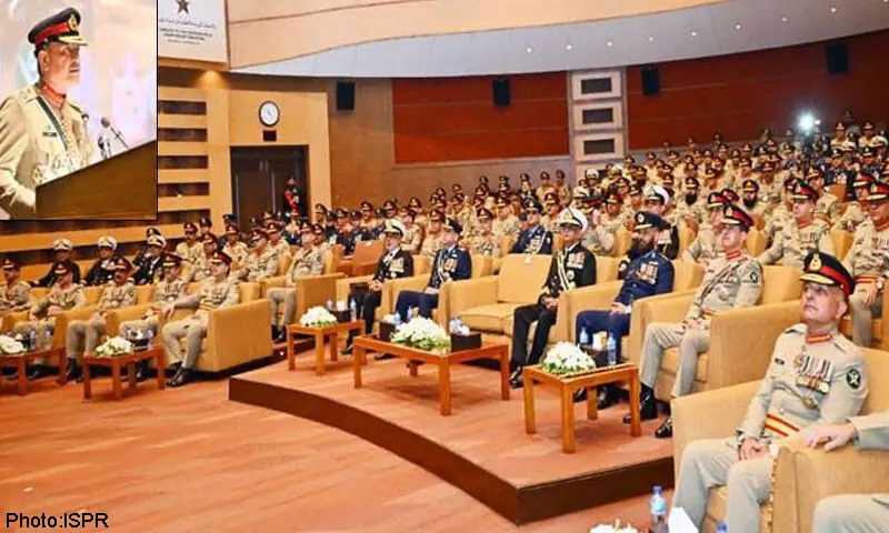 جنرل ہیڈکوارٹرز (جی ایچ کیو) میں تینوں مسلح افواج کے افسران سے خطاب کرتے ہوئے فیلڈ مارشل نے کہا کہ دفاعی خطرات بڑھ رہے ہیں اسلئے تینوں مسلح افواج متحد نظام کے تحت ملٹی ڈومین آپریشنز کو مزید مضبوط کریں۔ انہوں نے کہا کہ نئے ڈیفنس فورسز ہیڈکوارٹرز کا قیام تاریخی اور دفاعی تقاضوں کے مطابق ضروری قدم ہے۔