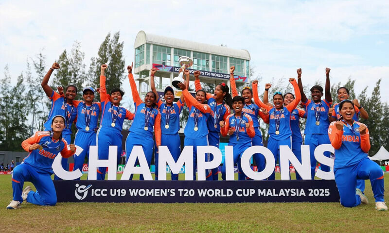 بھارتی ویمنز ٹیم نے انٹرنیشنل کرکٹ کونسل (آئی سی سی) انڈر 19 ٹی20 ورلڈ کپ جیت لیا، بھارتی ٹیم نے فائنل میں جنوبی افریقہ کی ویمنز ٹیم کو 9 وکٹوں سے شکست دی۔