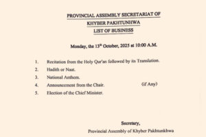 خیبر پختونخوا اسمبلی میں نئے وزیراعلیٰ کے انتخاب کا شیڈول جاری