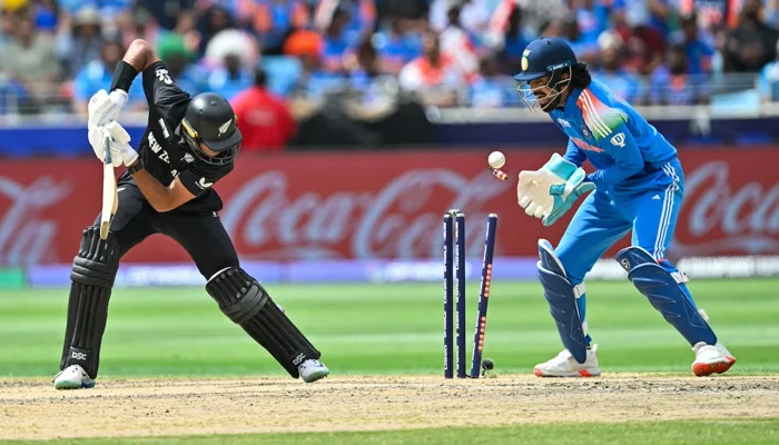 کیوی بیٹرز کو بھارتی اسپنرز نے جال میں پھنسا لیا، آدھی ٹیم 165 رنز پر پویلین پہنچا دی، ورون اور کلدیپ نے دو دو جبکہ جڈیجا نے ایک شکار کیا، محمد شامی نے بھی ایک وکٹ حاصل کی۔نیوزی لینڈ کے اوپنرز نے ٹیم کو اچھا آغاز فراہم کیا اور 7.4 اوورز میں اسکور 57 رنز تک پہنچایا جس کے بعد بھارت اوپنر وِل ینگ کی وکٹ لینے میں کامیاب ہوگیا، وہ 15 رنز بنا کر آؤٹ ہوئے۔