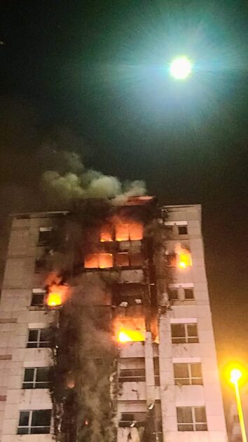 رپورٹ کے مطابق آگ لگنے کی وجہ تاحال معلوم نہیں ہوسکی تاہم دور سے عمارت میں آگ کے بلند ہوتے شعلے نظر آرہے تھے۔پولیس حکام کے مطابق آگ عمارت کے 10 سے 12 فلیٹس تک محدود رہی، انہوں نے تصدیق کی کہ فائربریگیڈ کے عملے نے آگ پر قابو پالیا ہے اور اب تک کسی کی ہلاکت یا زخمی ہونے کی اطلاع نہیں ملی ہے۔