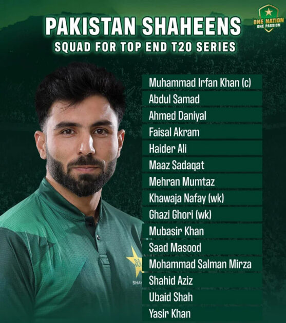 لاہور (اسپورٹس رپورٹر )پاکستان کرکٹ بورڈ نے آسٹریلیا میں ہونے والی ٹاپ اینڈ ٹی 20 سیریز کیلئےپاکستان شاہینز کے 15 رکنی اسکواڈ کا اعلان کر دیا۔ آل راؤنڈر عرفان خان نیاز ٹیم کی قیادت کریں گے، اسکواڈ میں نوجوان اور باصلاحیت کھلاڑیوں کو شامل کیا گیا ہے۔