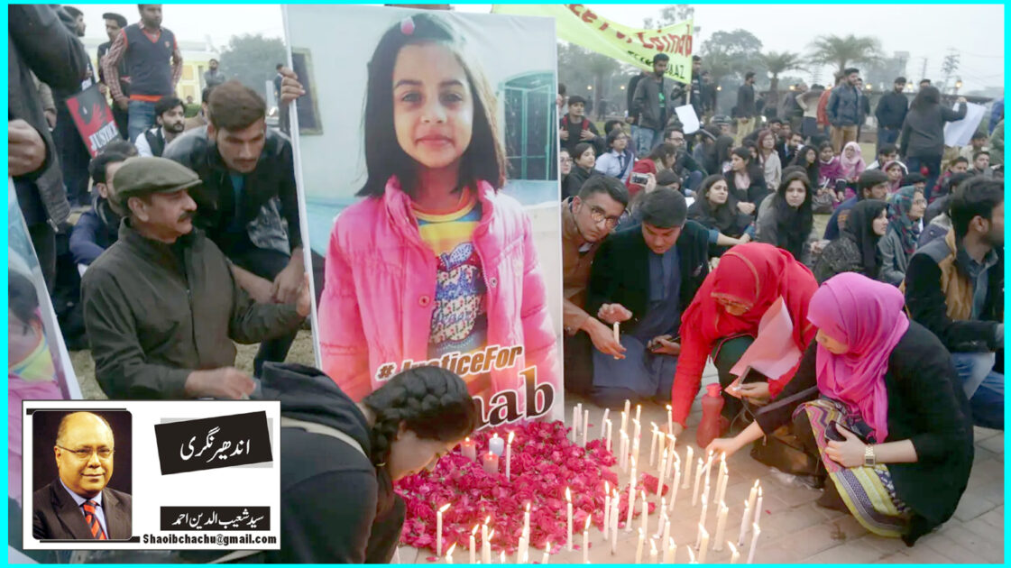 پاکستان کا ”سو کالڈ“ اسلامی معاشرہ جس تنزلی کی طرف جا رہا ہے اسے دیکھ کر قصور کی معصوم زینب یاد آ جاتی ہے۔ 2018ء جنوری میں زینب سے ریپ اور قتل کا دلخراش واقعہ ہوا۔ تو وقت ٹیلی ویژن پر محترم سلیم بخاری صاحب کے ساتھ اپنے ٹیلی ویژن پروگرام ٹاکرا میں عوام سے اور اپنے آپ سے ایک وعدہ کیا تھا کہ زینب کو نہ بھولیں گے اور نہ بھولنے دیں گے۔ زینب کو اپنے دِل و دماغ سے جدا نہیں کریں گے اور ایسی معصوم بچیوں سے ہونے والی زیادتیوں پر خاموش نہیں بیٹھیں گے۔ بذریعہ قلم اور بذریعہ آواز اس معاملے کو اٹھاتے رہیں گے۔ لہٰذا اب اپنے قلم کے ذریعے ایسے معاملات کو اُٹھانے کی کوشش کرتا ہوں۔ کچھ دنوں پہلے بھی اس بارے میں لکھا تھا، لیکن ہر چند دن بعد کوئی نیا دلخراش واقعہ سامنے آ جاتا ہے۔ تو ویسی ہی تکلیف ہوتی ہے جیسی آج سے سات سال پہلے زینب کی لاش دیکھ کر اور اس سے بھی 32 سال پہلے قصور ہی کی ایک اور معصوم بچی کی لاش دیکھ کر ہوئی تھی۔ میو ہسپتال لاہور کے ڈیڈ ہاؤس سے پوسٹ مارٹم کے بعد نکلنے والی معصوم بچی کا کفن میں آدھا چھپا ننھا معصوم چہرہ دیکھ کر وہ تکلیف ہوئی تھی، جس نے بہت دِنوں تک رات کو سونے نہیں دیا تھا۔ اس بچی کے دو قاتلوں کو بھی اس وقت کے ایس ایس پی لاہور (بعد آئی جی) کے حکم پر انہی کھیتوں میں لیجا کے دنیا سے رخصت کیا گیا تھا جہاں انہوں نے اس بچی کے ساتھ درندگی سے ریپ کرنے کے بعد اسے قتل کیا تھا۔ 2018ء والی قصور کی زینب کا قاتل پکڑا گیا اور سزا سنائی گئی، لیکن سچ یہی ہے کہ پولیس کو آج 21 ویں صدی میں بھی اتنی تربیت نہیں دی جا سکی کہ وہ ایسے کیسوں میں اتنے شواہد اکٹھے کر لیں کہ عدالت سے ملزمان کو سخت ترین سزا دلوا سکیں، جس کا نتیجہ یہ ہے کہ پولیس اپنے ”ڈرائنگ روم“ میں ملزم کے ”اعترافِ جرم“ کو ”کافی“ سمجھ کر بعد خود ملزمان کو سزا دینے کا فیصلہ کرتی ہے۔تو متعلقہ ڈی ایس پی، ایس پی، ایس ایس پی، ڈی آئی جی یا صوبے کا آئی جی مقدمے کی نوعیت کے مطابق اکٹھے ہو کر ملزم کی عالم بالا کو رخصتی کا فیصلہ سنا دیتے ہیں۔ کاش ایسا نہ ہو۔ تازہ ترین دو تین کیس میں، بلکہ اس سے زیادہ کیسوں میں پولیس یہ قبول کر چکی ہے کہ ملزم یا ملزمان کا ڈی این اے ”میچ“ کر گیا تھا۔ اگر فرانزک لیبارٹری سے ثبوت مل گیا تھا تو اس کے بعد اس سے بڑا کون سا ثبوت ”پولیس اور جج صاحبان“ کو چاہئے تھا۔ یہ تو ایسے ہی ہے کہ ہم سب کو سائنس کی بدولت پتہ ہوتا ہے کہ نئے اسلامی مہینے کا چاند فلاں تاریخ کو نکلے گا، لیکن دور بینیں لگا کر ”چندا ماموں“ کو آسمان پر ڈھونڈنے کی اداکاری کی جاتی ہے۔ اب ڈی این اے نے ملزم کی نشاندہی کر دی کہ ملزم کون ہے تو کیا تلاش کر رہے ہیں۔ آج گھر گھر میں سی سی ٹی وی کیمرے لگ گئے ہیں اور کچھ نہیں تو کسی ہمسائے کا کیمرہ ہی ”مطلوبہ منظر“ محفوظ کر لیتا ہے۔اِس کے باوجود پولیس کا کہنا ہے کہ یہ شواہد عدالتوں کے لئے ناکافی ہیں۔ اب تو جج حضرات (اگر اسے اپنی توہین یا اپنے اوپر عدم اعتماد محسوس نہ کریں) سے گزارش ہے کہ وہ کوئی تازہ ریفریشر کورس کر لیں تاکہ انہیں پتہ چل سکے کہ ڈی این اے میچ ہونا کتنا اہم ہے۔ اس کے بعد اور کیا چاہئے۔ ایک شخص جس کا اس معصوم بچی سے کوئی تعلق نہیں اس کے ”سپرم“ کا اس بچی کے جسم پہ پایا جانا کتنا بڑا ثبوت ہے۔ آخر آپ کو اور کیا چاہئے۔