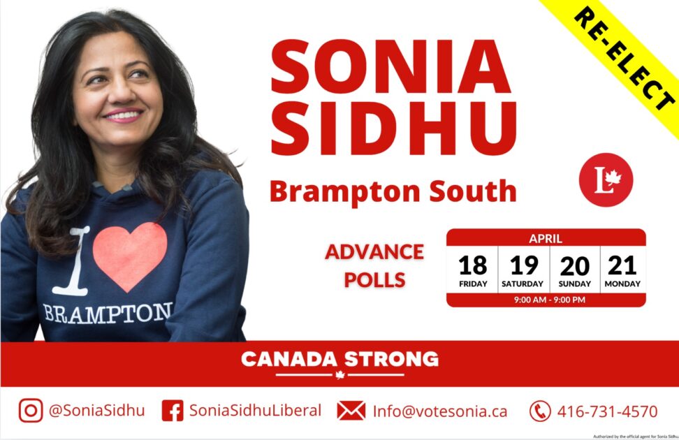 “ہم اپنے تمام دوستوں اور ساتھیوں کا دل کی گہرائیوں سے شکریہ ادا کرتے ہیں جنہوں نے اس مہم میں اب تک ہمارا ساتھ دیا۔ اب جب کہ ایڈوانس ووٹنگ کا عمل 18 اپریل سے 21 اپریل تک شروع ہونے والا ہے، آئیے مل کر سونیا سدھو اور لبرل ٹیم کیلئےاس انتخابی مہم کو مزید مضبوط بنائیں۔”