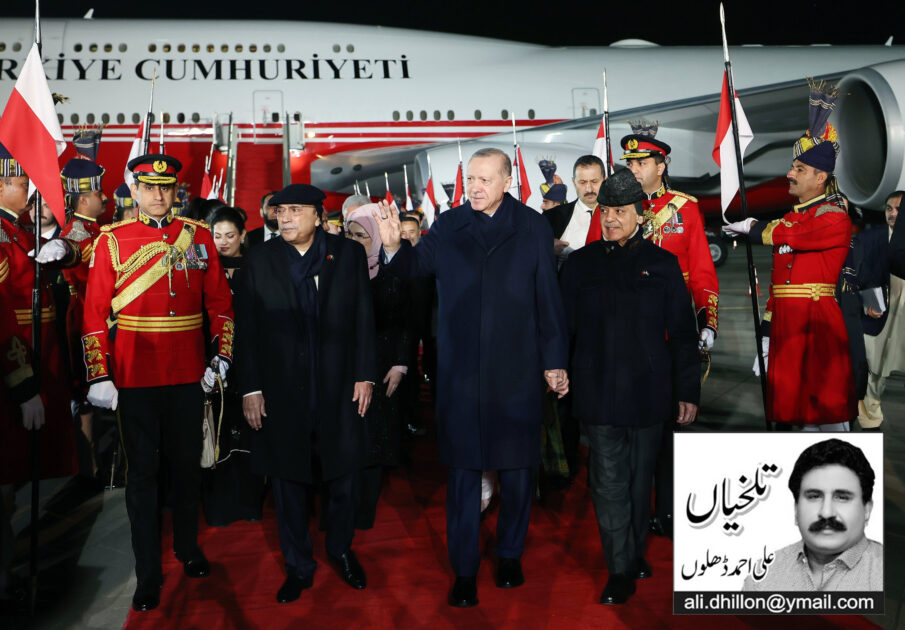 پھر پاکستان نے ترک بحری جہازوں کی خریداری کے معاہدے پر دستخط کیے ، جس سے ان کی دفاعی شراکت میں مزید اضافہ ہوا ہے۔جس کے بعد خوشگوار یاد کے ساتھ وہ واپس چلے گئے۔ یہ دورہ اس لیے بھی اہم ہے کیوں کہ بھارت اور امریکا جب اپنی سمت کا تعین کر رہے ہیں، میل جول کر رہے ہیں تو یہ یقینا پاکستان سمیت کئی ممالک کے لیے اہم اور تشویشناک ہے۔ جبکہ واشنگٹن اور دہلی بھی ترکیہ کے پاکستان کی طرف جھکاﺅ کو تشویشناک نظر سے دیکھ رہے ہیں،،، کیوں کہ اس سے پہلے جنوری میں، دونوں ممالک نے مشرقی بحیرہ روم میں بحری مشقیں بھی کیں، جن سے دونوں کے بڑھتے ہوئے فوجی تعاون کا اظہار ہوتا ہے۔خیر یہ چیزیں خطے میں ”توازن“ قائم کرنے کے لیے ضروری ہوتی ہیں۔ آپ کو اپنا جھکاﺅ شو آف کرنا پڑتا ہے، ایک ریاست کو دوسری ریاست کے سامنے اپنے آپ کو مضبوط دکھانے کے لیے بہت سے پاپڑ بیلنا پڑتے ہیں،،، اور اس حوالے سے پاکستانی سیاستدانوں کے بارے میں تو مجھے علم نہیں مگر ترک صدر اس پوری علاقائی صورتحال کو کیش کروانا بخوبی جانتے ہیں۔