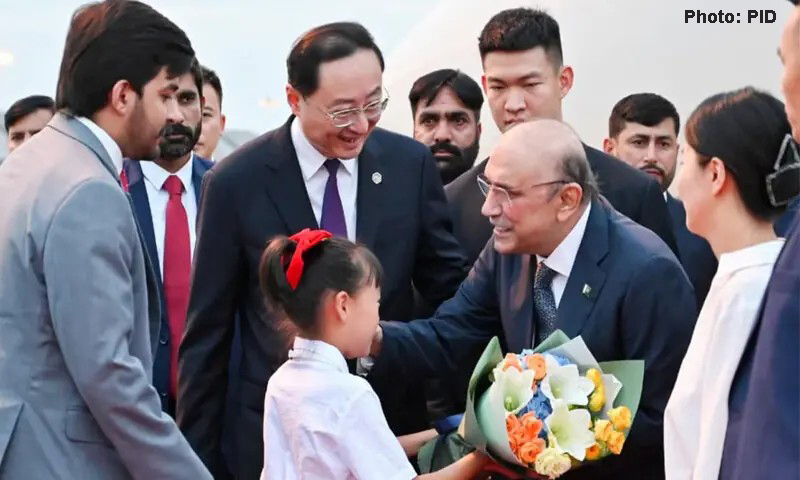 چنگدو (نمائندہ خصوصی) صدر مملکت آصف علی زرداری چین کے دس روزہ سرکاری دورے پر آج چنگدو پہنچ گئے، جہاں چینی حکومت کے اعلیٰ حکام نے ان کا شاندار استقبال کیا۔چین کے نائب وزیرِ خارجہ اور نائب گورنر نے چنگدو ایئرپورٹ پر صدر آصف علی زرداری کا خیر مقدم کیا۔ اس موقع پر پاکستان کے سفیر خالد ہاشمی اور چین کے سفیر جیازگن زی ڈونگ بھی موجود تھے۔