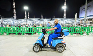 رمضان المبارک میں مسجد نبویﷺ میں زائرین کو فوری طبی امداد کی فراہمی کےلیے مدینہ ہیلتھ کلسٹر نے ایک نئی ایمرجنسی اسکوٹر سروس کا آغاز کردیا ہے ۔