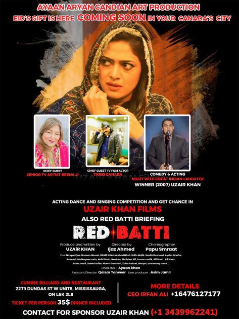 مسی ساگا (نمائندہ خصوصی)ایان آریان کینیڈین آرٹ پروڈکشن کے تحت فلم ’ریڈ بتی‘ کی تشہیر کے ساتھ عید الفطرکے موقع پر مسی ساگا میں خصوصی ایونٹ کے انعقاد کا اعلان کیا گیا ہے۔