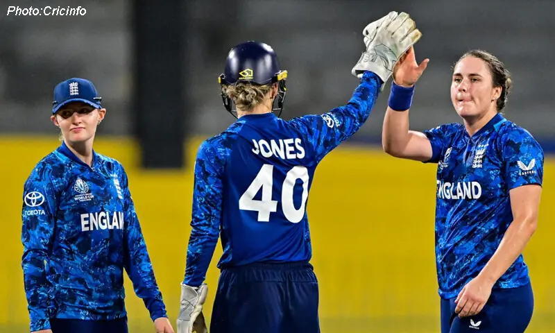 انگلینڈ کی صوفی ایکلسٹن نے صرف 17 رنز دے کر 4 کھلاڑیوں کو آؤٹ کیا، جبکہ چارلی ڈین اور نیٹ سیور برنٹ نے دو، دو وکٹیں حاصل کیں۔انگلینڈ کی یہ کامیابی ویمنز ورلڈ کپ میں ان کے سیمی فائنل کے امکانات کو مزید مستحکم کرتی ہے۔