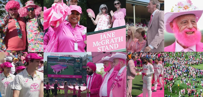 آسٹریلیا اور بھارت کے درمیان پانچ ٹیسٹ میچوں پر مشتمل بارڈر گواسکر سیریز کے سڈنی میں کھیلے گئے آخری میچ کے تیسرے روز سڈنی کرکٹ گراؤنڈ گلابی رنگ میں نہا گیا۔ شائقین اور کرکٹرز سب سے گلابی رنگ کو پہناوا بنا لیا۔