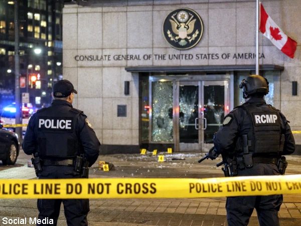 ٹورنٹو (نمائندہ خصوصی، کینیڈین پولیس) کینیڈا کے شہر ٹورنٹو میں امریکی قونصل خانے پر فائرنگ کا واقعہ پیش آیا ہے۔کینیڈین پولیس کے مطابق فائرنگ کا واقعہ علی الصبح پیش آیا تاہم اس واقعے میں کسی شخص کے زخمی ہونے کی اطلاع نہیں ملی۔