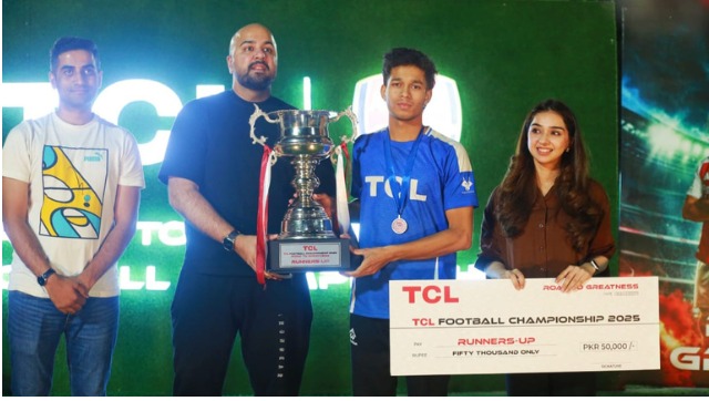 لاہور:پاکستان کے نمبر 1 ایل ای ڈی ٹی وی برانڈ ٹی سی ایل کی جانب سے لاہور میں دوروزہ سنسنی خیز ”روڈ ٹو گریٹنس کپ” ٹبال ٹورنامنٹ کا انعقاد کیاگیا۔اس ٹورنامنٹ میں پاکستان کے پانچ ریجنز لاہور،کراچی،اسلام آباد،پشاور اور کوئٹہ کی چیمپئن ٹیمز نے شرکت کی۔ایونٹ کا سنسنی خیز فائنل اسلام آباد اور کراچی ریجن کی ٹیمز کے مابین کھیلا گیاجو اسلام آبادنے3-1سے جیت کر نیشنل چیمپئن بننے کا اعزاز حاصل کیا، چیمپئن ٹیم کو ٹرافی کے ساتھ ساتھ ایک لاکھ روپے کی انعامی رقم بھی دی گئی۔