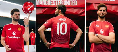 پاکستانی کھلاڑی سٹارکھلاڑی شاہین آفریدی کا بڑا اعزاز.پاکستانی کرکٹ اسٹار شاہین آفریدی نے معروف برطانوی فٹ بال کلب مانچسٹر یونائیٹیڈ کی کٹ لانچ کردی.شاہین شاہ آفریدی مانچسٹر یونائیٹیڈ فٹبال کلب کی آفیشل کٹ لانچ کرنے والے پہلے مسلم اور پاکستانی ہیں.دنیا کے معروف فٹ بال کلب کی کٹ لانچ کے موقع پر شاہین شاہ آفریدی نے اولڈ ٹریفورڈ اسٹیڈیم کا دورہ بھی کیا .ذرائع مانچسٹر یونائیٹیڈ کلب کے مطابق شاہین شاہ آفریدی سے مل کر ان کے ساتھ خاص تعاون پر خوش ہیں.شاہین شاہ آفریدی کی طرف سے کٹ لانچ کرنے سے نوجوانوں کو کھیلوں کی جانب راغب ہونے کی ترغیب ملے گی.کلب ذرائع کاکہناہےمستقبل میں بھی شاہین شاہ آفریدی مانچسٹر یونائیٹیڈ کے ساتھ مزید تعاون کریں گے.کٹ لانچ کرنے اور مانچسٹر یونائیٹیڈ کے ساتھ تعاون کیلئے شاہین شاہ آفریدی خصوصی طور پر برطانیہ آئے تھے.