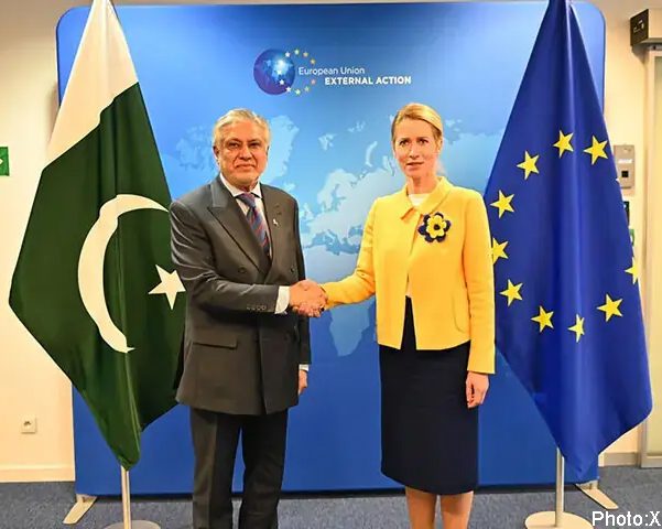 مشترکہ بیان میں کہا گیا کہ دونوں فریقین نے افغانستان کے ڈی فیکٹو حکام سے مطالبہ کیا کہ وہ افغان سرزمین سے دہشت گردی کے خاتمے کے مشترکہ ہدف کے حصول میں تعمیری کردار ادا کریں۔ اسحٰق ڈار اور کایا کالاس نے افغانستان کی بگڑتی سماجی و معاشی صورتحال پر تشویش کا اظہار کیا اور ایک پُرامن، مستحکم اور خودمختار افغانستان کی حمایت کی۔