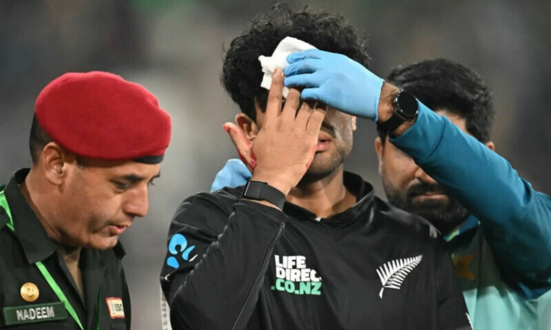 لاہور کے قذافی اسٹیڈیم میں کھیلے گئے پہلے میچ میں فیلڈنگ کے دوران کیوی کھلاڑی راچن رویندرا کے ماتھے پر گیند لگ گئی تھی اور ان کے سر سے خون بہہ رہا تھا، گیند لگنے سے راچن کے سر پر کٹ لگا تھا جس کے بعد انہیں فوراً گراؤنڈ سے باہر لے جایا گیا۔