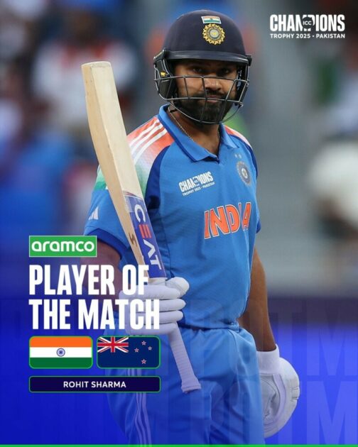 بھارتی ٹیم کے کپتان روہت شرما کو چیمپئنز ٹرافی کے فائنل میں ذمہ دارانہ اننگز کھیلنے پر مین آف دی میچ سے بھی نوازا گیا۔اس موقع پر گفتگو کے دوران ان کا کہنا تھا کہ ہم نے پورے ٹورنامنٹ میں بہت اچھا کھیلا، مجھے پوری ٹیم اور مینجمنٹ کی سپورٹ حاصل تھی۔
