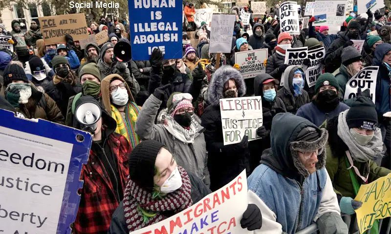 منی ایپولس میں تقریباً 3000 وفاقی امیگریشن اور بارڈر کنٹرول ایجنٹس کی موجودگی کیخلاف بڑے پیمانے پر احتجاج جاری ہے۔ مظاہرے ایک مقامی خاتون رینی نیکول گڈ کی فائرنگ سے ہلاکت کے بعد شروع ہوئے، چھاپوں کے دوران متعدد افراد زخمی بھی ہوئے۔ آئی سی ای کے مطابق منی ایپولس سے گرفتار ہونے والا نکاراگوا کا شہری ٹیکساس میں حراست کے دوران انتقال کر گیا، جبکہ وینزویلا کے ایک شہری کو ٹانگ میں گولی لگی اور دو کمسن بچے آنسو گیس سے شدید متاثر ہوئے۔