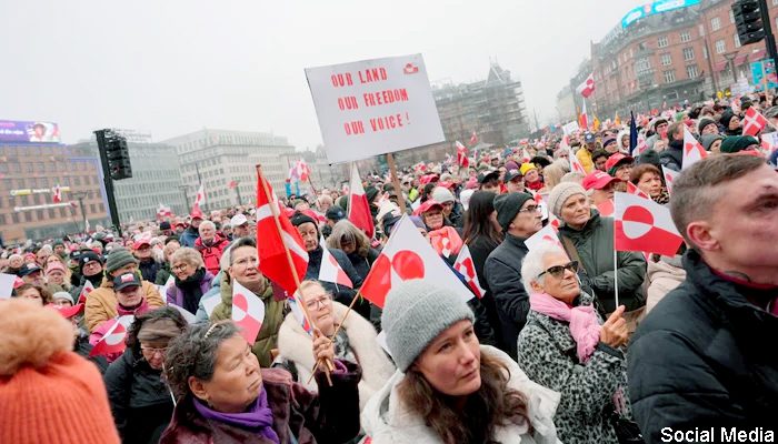ڈنمارک:شدید سردی کے باوجود ہزاروں افرادکاامریکی دھمکی کیخلاف مظاہرہ