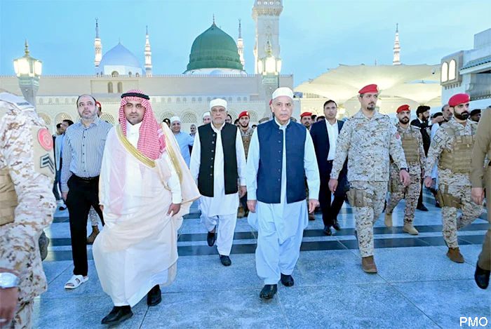 اس موقع پر وزیرِاعظم نے روضۂ رسول ﷺ کی زیارت کی اور سلامِ عقیدت پیش کیا، جبکہ ملک و قوم کی ترقی، سلامتی اور عالمی امن کیلئےخصوصی دعائیں بھی کیں۔وزیرِاعظم گزشتہ شب جدہ سے مدینہ منورہ پہنچے تھے، جہاں گورنر مدینہ شہزادہ سلمان بن سلطان نے ان کا استقبال کیا۔