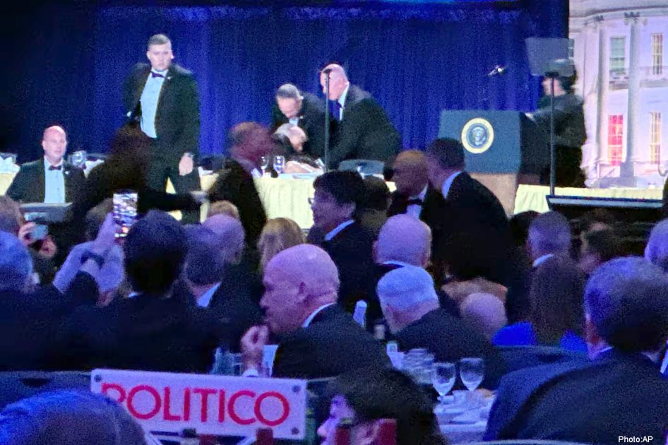 واشنگٹن( امریکی و بین الاقوامی میڈیا رپورٹس)امریکی دارالحکومت واشنگٹن میں وائٹ ہاؤس کورسپونڈنٹس ڈنر کے دوران فائرنگ کا واقعہ پیش آیا جس کے بعد صدر ڈونلڈ ٹرمپ کو سیکیورٹی اہلکاروں نے فوری طور پر اسٹیج سے ہٹا کر محفوظ مقام پر منتقل کر دیا۔