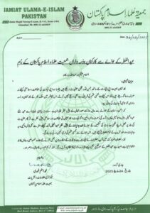 سیکریٹری اطلاعات و نشریات جے یو آئی (ف) محمد اسلم غوری کی جانب سے جاری اعلامیے میں کہا گیا ہے کہ ملک بھر کے کارکنان و کو ہدایت کی جاتی ہے کہ امن و امان کے حوالے سے نازک صورتحال کے پیش نظر مولانا فضل الرحمٰن سے عید ملنے ڈیرہ اسمعٰیل خان آنے کی زحمت نہ کریں۔