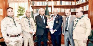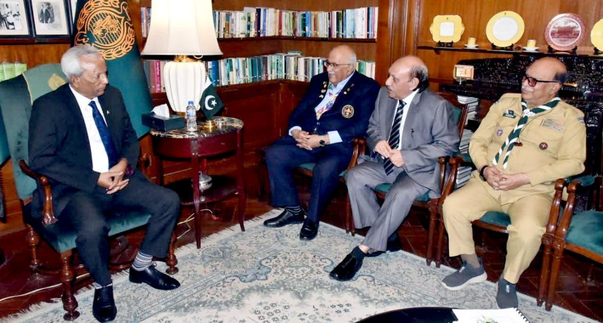 کراچی(نامہ نگار)سندھ بوائے اسکاؤٹس ایسوسی ایشن کے وفد نے گورنر سندھ و چیف اسکاؤٹ سید نہال ہاشمی سے گورنر ہاؤس میں ملاقات کی اور انہیں گورنر کا منصب سنبھالنے پر مبارکباد دیتے ہوئے پھول پیش کیے۔