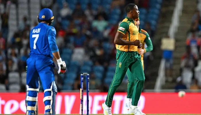 ٹرینیڈاڈ ٹوباگو(چودھری اشرف سے)جنوبی افریقہ نے افغانستان کو بآسانی 9۔وکٹوں سے ہرا کر پہلی بار ٹی ٹونٹی ورلڈ کپ کا فائنل کھیلنے کا اعزاز حاصل کرلیا۔پروٹیز کی تباہ کن باولنگ کے سامنے ان فارم افغانستان کی بیٹینگ لائن ریت کی دیوار ثابت ہوئی۔میگا ایونٹ میں حیران کن نتائج دینے والی افغانستان چوکرز جنوبی افریقن سے مات کھا کر باہر ہوگئی.ٹرانیڈاڈ ٹوباگو ویسٹ انڈیز میں ٹی ٹونٹی ورلڈ کپ کا پہلا سیمی فائنل کھیلا گیا۔افغانستان کا ٹاس جیت کر پہلے بیٹنگ کرنے کا فیصلہ غلط ثابت ہوا۔پروٹیز کی بائولنگ کے سامنے افغانستان کے بیٹرز خزاں کے پتوں کی طرح جھڑ کر پویلین لوٹتے رہے اور پوری ٹیم 12۔ویں اوورز میں 56۔رنز پر ڈھیر ہوگئی ۔افغانستان کے عمر زئی کے علاوہ کوئی کھلاڑی ڈبل فگر میں داخل نہ ہوسکا جنوبی افریقہ کے جینسن اور تبریز شمسی نے تین تین جبکہ ربادہ اور نورٹجی نے دو دو وکٹیں حاصل کیں.جنوبی افریقہ نے مطلوبہ ہدف 9 ویں اوورز میں ایک وکٹ کے نقصان پر پورا کرکے پہلی بار ٹی ٹونٹی ورلڈ کپ کے فائنل میں جگہ بنالی .ہینڈرکس 29 اور کپتان مارکرم23 رنز بنا کر ناقابل تسخیر رہے۔جنوبی افریقہ نے پہلی مرتبہ ورلڈ کپ کا سیمی فائنل جیت کر خود کے چوکرز ہونے کا داغ بھی دھو دیا۔ اب دوسرے سیمی فائنل کی فاتح ٹیم سے جنوبی افریقہ کا فائنل 29۔جون کو بارباڈوس میں ہوگا۔