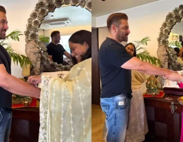 ممبئی(شوبزڈیسک)بالی ووڈ سپر اسٹار سلمان خان نے ہفتے کو اپنے گھر پر رکشا بندھن کی تقریب میں شرکت کی۔اس موقع پر وہ اپنے بڑے خاندان میں گھرے ہوئے تھے جہاں انہوں نے اپنی بہنوں سے راکھیاں بندھوائیں اور مسکراتے نظر مزید پڑھیں