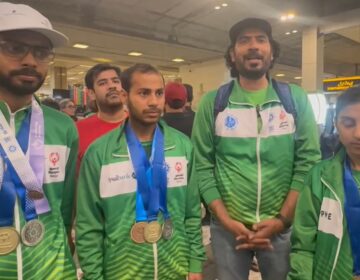لاہور ( سپورٹس ڈیسک) سپیشل اولمپک ورلڈ ونٹرگیمز میں11میڈلز جیتنے والےپاکستانی اسکواڈ کے کھلاڑی اورأفیشلز وطن واپس پہنچ گئے کراچی ایئرپورٹ پہنچنے پرپاکستان اولمپک ایسوسی ایشن کی ایسوسی ایٹ سیکریٹری جنرل تہمینہ أصف۔ ایس او پی کے عہدیداران اور ایتھلیٹس مزید پڑھیں