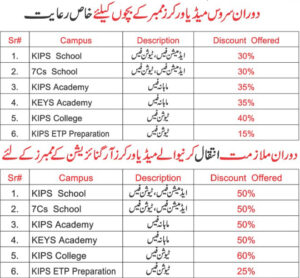 اس موقع پر ایم ڈی کیپس سلمان مقصود، ڈائریکٹر کرنل(ر)اسد اللہ خان،جی ایم ظہیر احمد،منیجر فرنچائزاسامہ عالم بیگ نے ان کا استقبال کیا ۔ خوشگوار ماحول میں گفتگوکے بعد ایک معاہدے طے پایا ، جس میں میڈیا ورکرز کے ممبران کے بچوں کی تعلیمی اخراجات ، ایڈمیشن ،داخلہ فیس ،ماہانہ ٹیوشن فیس کی مد میں 30سے40فیصد رعایت دینے پر اتفاق طے پایااور دوران ملازمت میڈیا ورکرز کے انتقال کی صورت میں انکے بچوں کو 50سے60فیصد تک رعایت دینے پر اتفاق ہوا۔